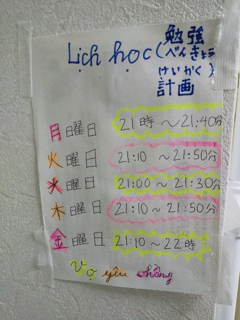 ベトナム人は総じて日本人より子供っぽいように感じます。そんな側面がこの計画表にも現れているかと思います。